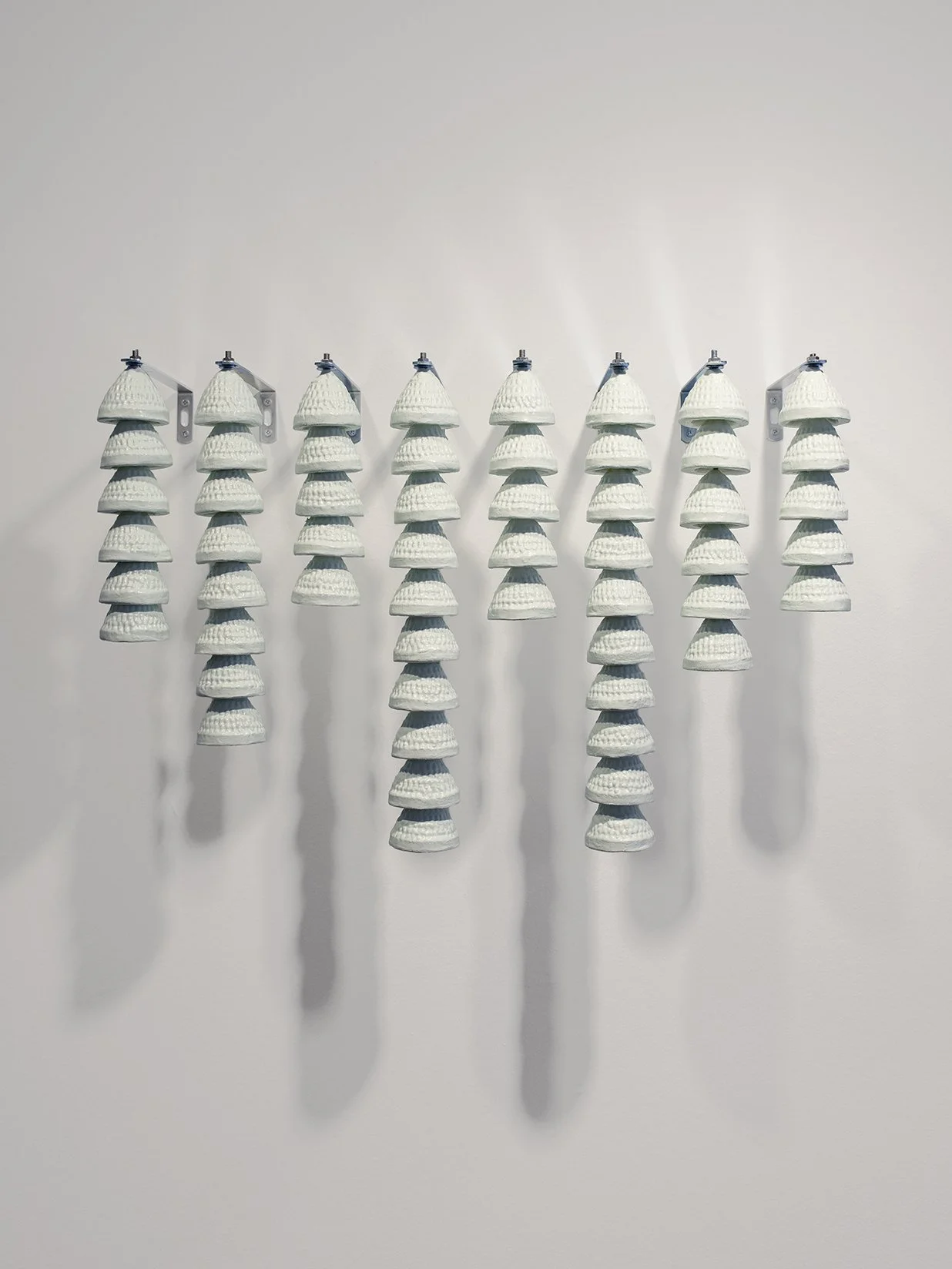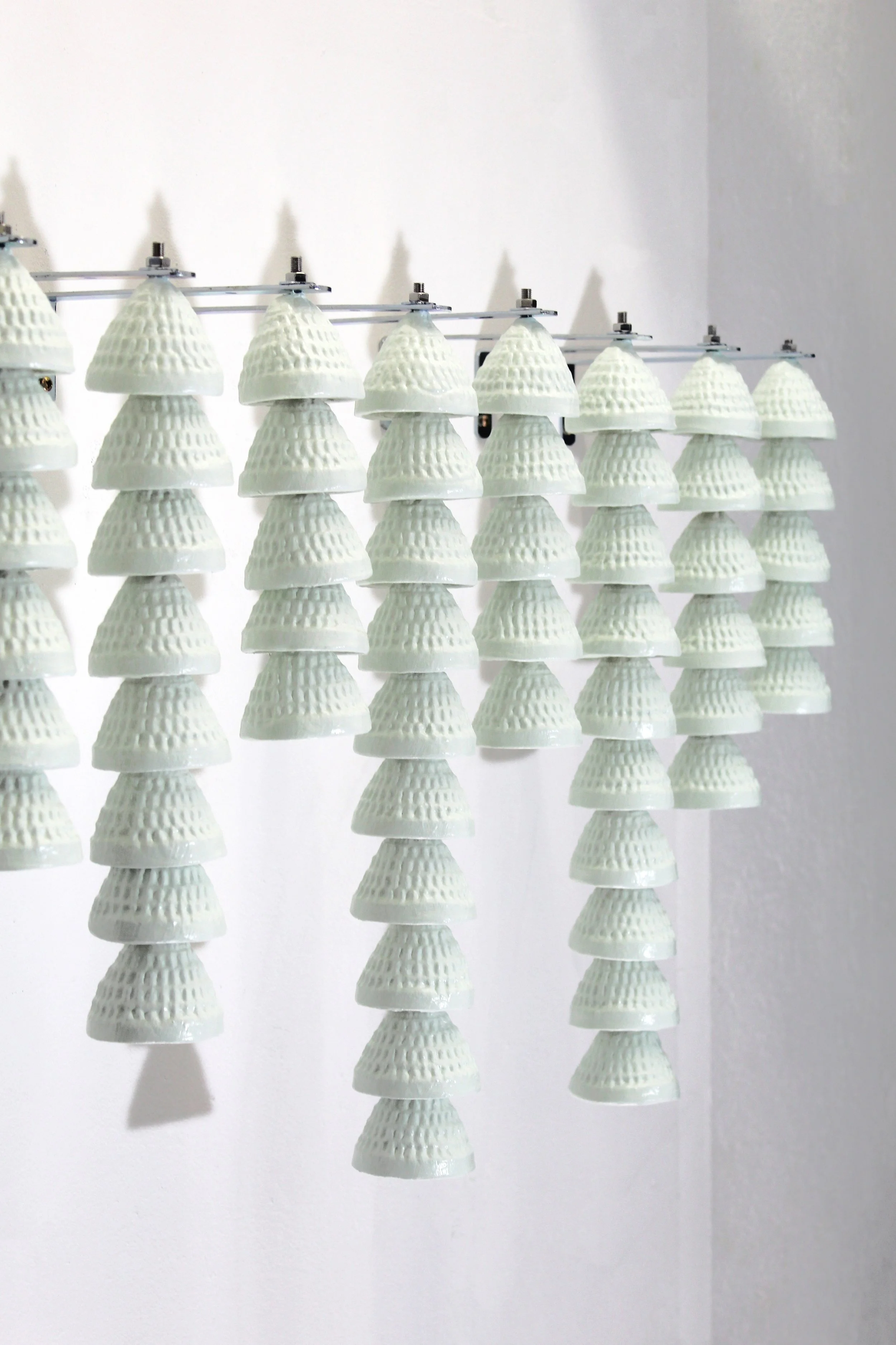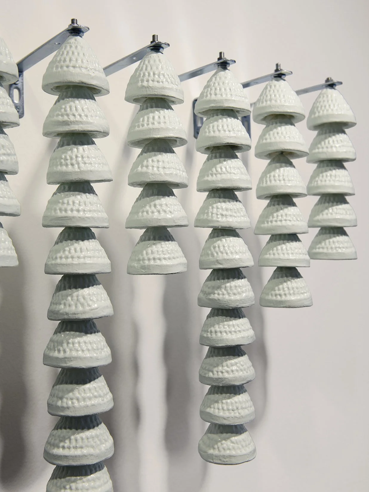 Guirlande, 2026, argil, lacquer and metal, variable dimensions